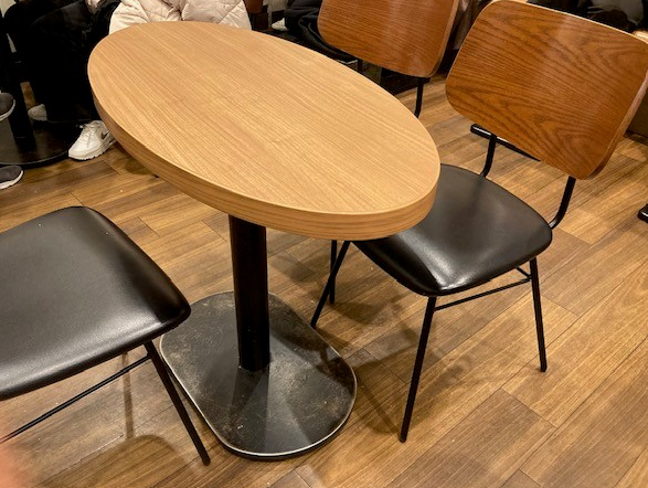 急にドーナツが食べたい!と思って有楽町のクリスピー・クリーム・ドーナツに入りました。イートインで食べていたら隣の席のテーブルが楕円!あんまり見ない形だな、と思って臨席の3名様がいなくなって写真に撮っておきました☆