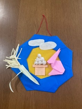 先週、姉がデイから持ち帰った十五夜の作品。そんな季節か・・・暑くてなんかしっくりきません・・・ともあれ、かわいい作品です☆